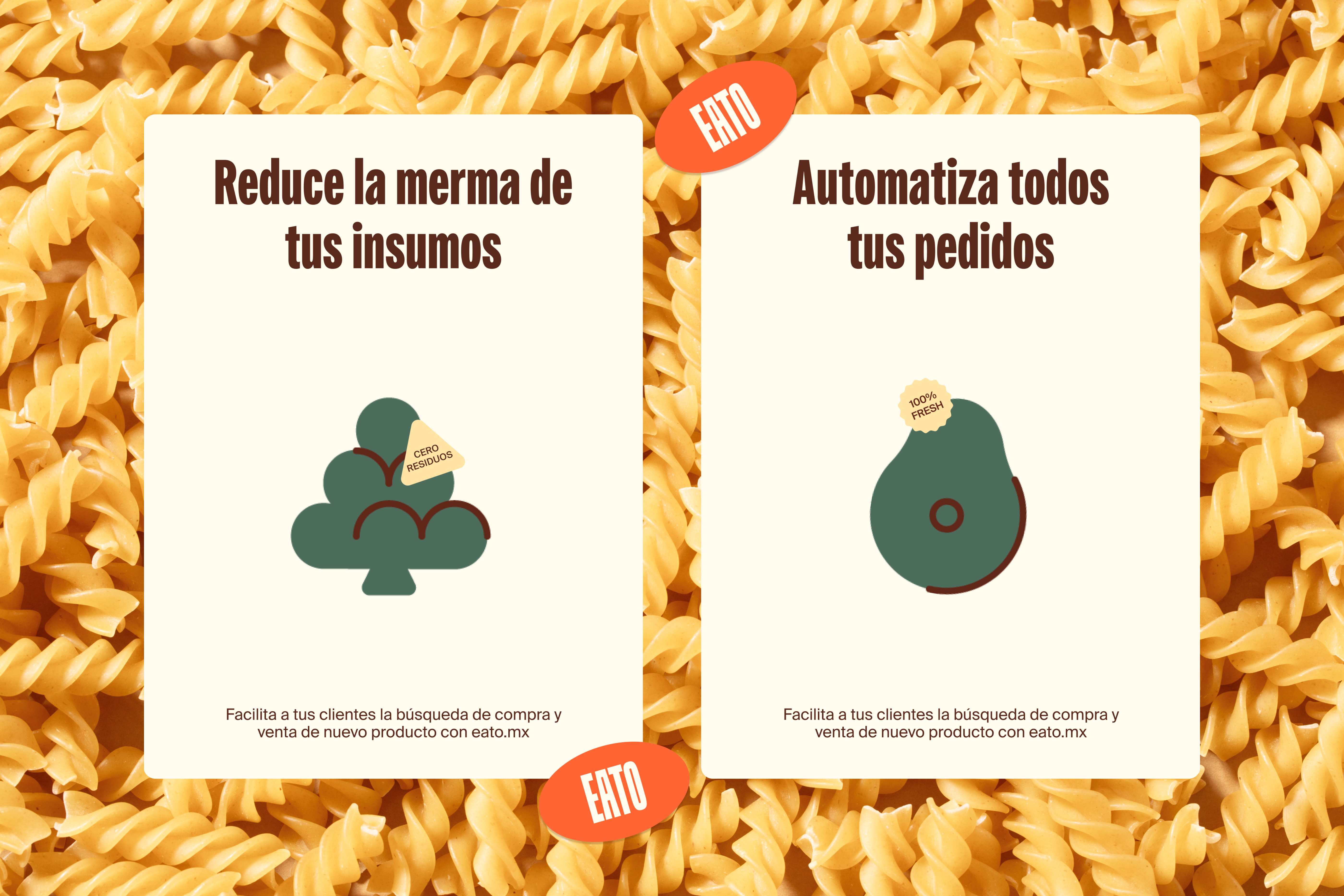 EATO is a service based digital platform meticulously designed to enhance and automate ingredient procurement for restaurant owners committed to minimizing waste. To navigate the complexities of entrepreneurship, we developed an accessible and intuitive identity along with UI/UX guidelines to create a solution that seamlessly blends practicality and creativity. We built a distinguishable branding system that fuses friendliness and technical precision through a creative wordmark, custom and fun iconography system, modern typography, and a vibrant color palette, all living inside of an accessible website, to reshape how ingredient procurement is handled in the restaurant industry.